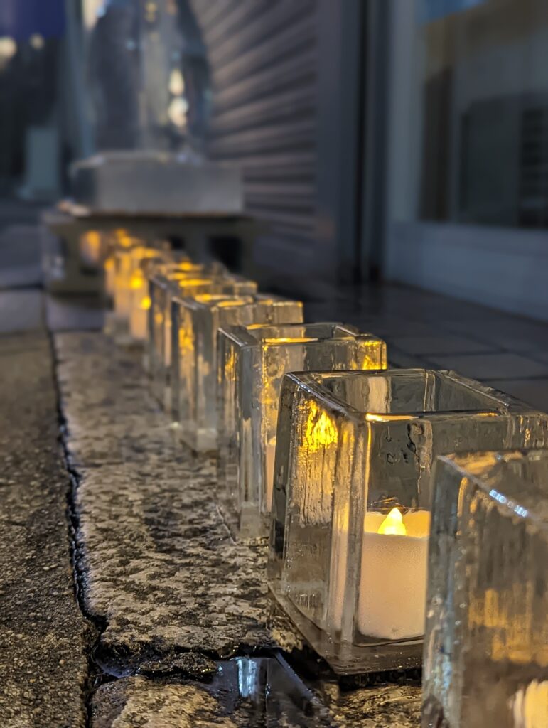 弊社は、18日(土)、25日(日)に野口商店さん店舗前で、氷の彫刻ライブパフォーマンスを行います。